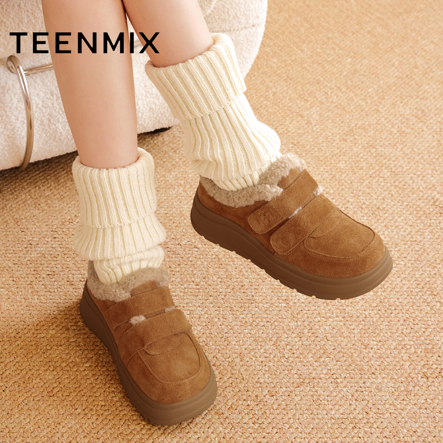 短靴冬季 雪地靴女棉鞋 天美意厚底加绒保暖毛毛鞋 新款 双11预售