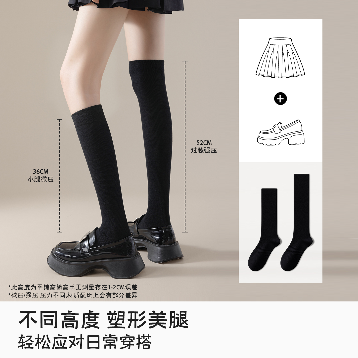 JKN压力小腿袜女春秋强压显瘦腿jk袜子黑色过膝高筒半中筒长筒袜
