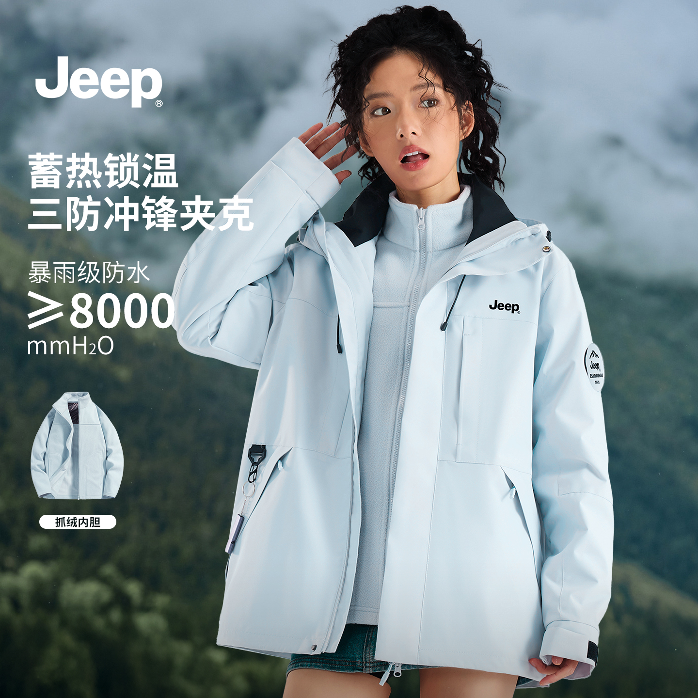 jeep吉普官方三合一冲锋外套女款 防风防水户外登山衣服夹克男 秋款