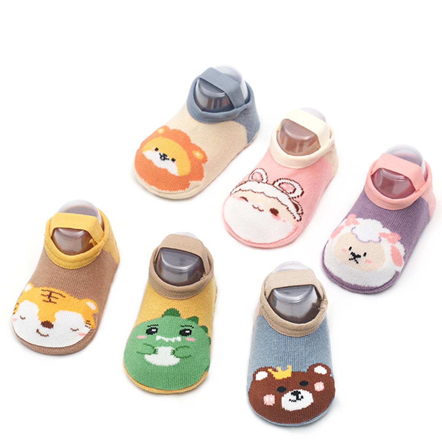 婴儿地板袜春秋薄款 卡通学步防滑袜 短袜绑带纯棉宝宝袜子夏季