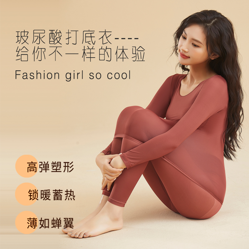 发热打底玻尿酸美肤肌底衣 套装 无痕保暖内衣女士冬季 超薄秋衣秋裤