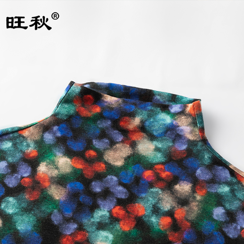 印花妈妈装 女套头长袖 半高领内搭毛衣女 印花针织衫 超细精纺羊毛衫
