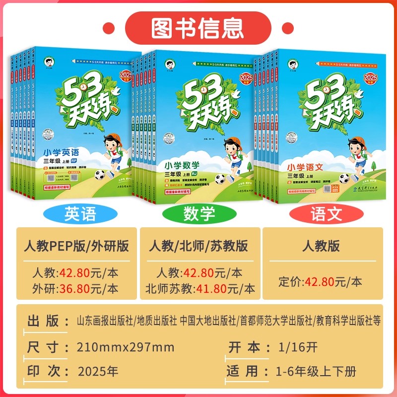 2025秋版 3课本书同步训练 53天天练一二三四年级五六年级上册下册语文数学英语人教苏教北师大冀教西师青岛译林小学5.3五三天天练5