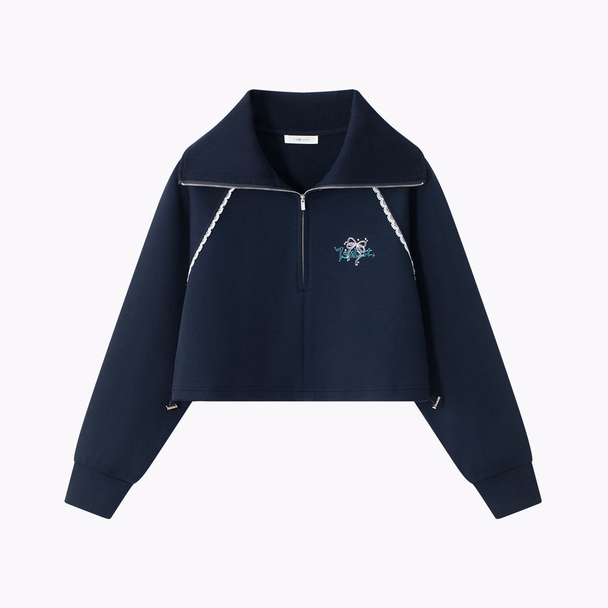 TSMLXLT蕾丝边蝴蝶结刺绣卫衣女2025秋冬新款 显瘦短上衣外套 时尚