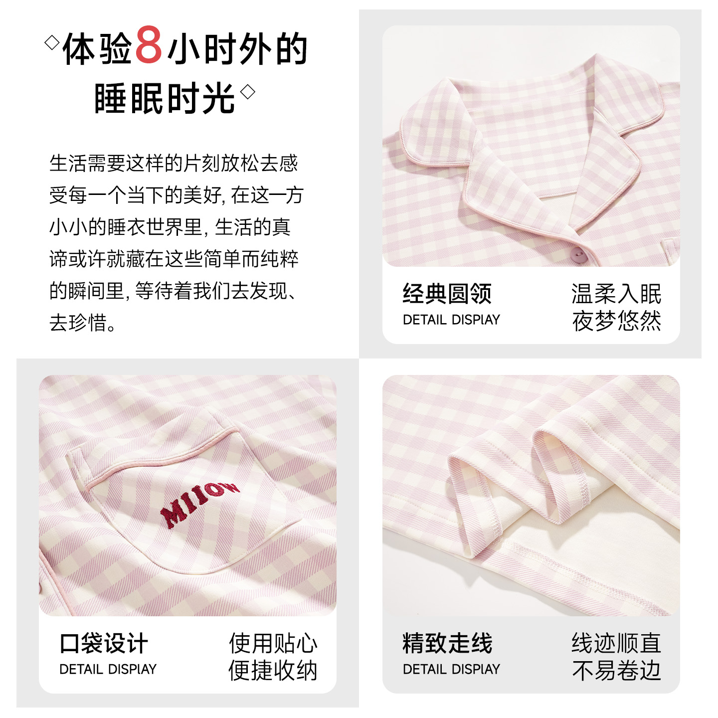 格纹日系无印风家居服套装 猫人纯棉睡衣女款 宽松开衫 2025新款 长袖