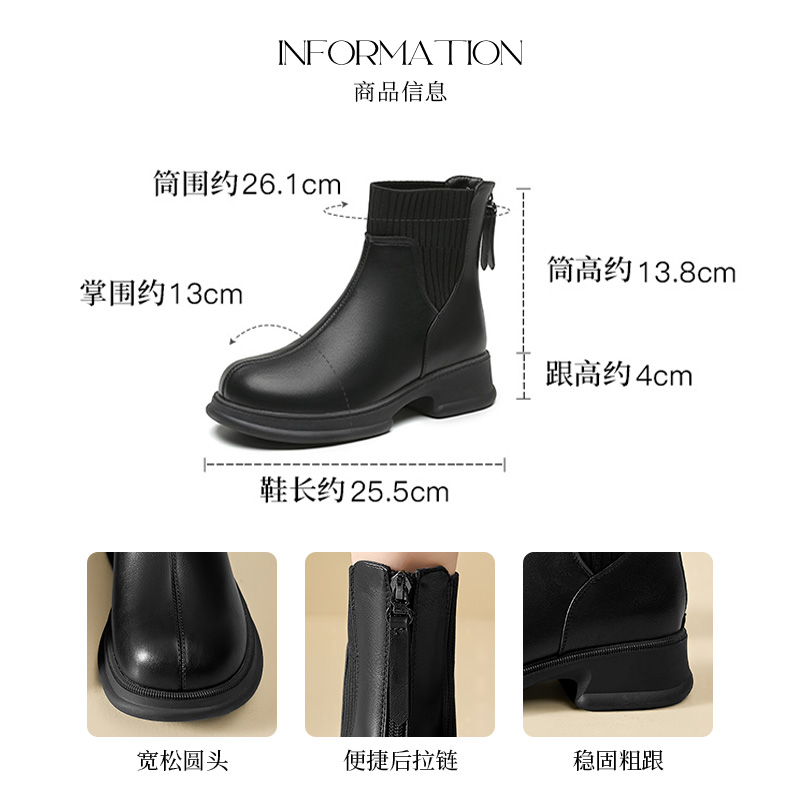 时尚 大东时装 新款 2025冬季 粗跟后拉链中跟圆头弹力靴 靴女鞋