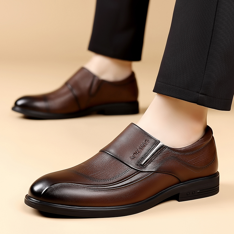 男真皮秋季 加绒厚底商务休闲皮鞋 中老年爸爸鞋 男鞋 大码 老人头皮鞋