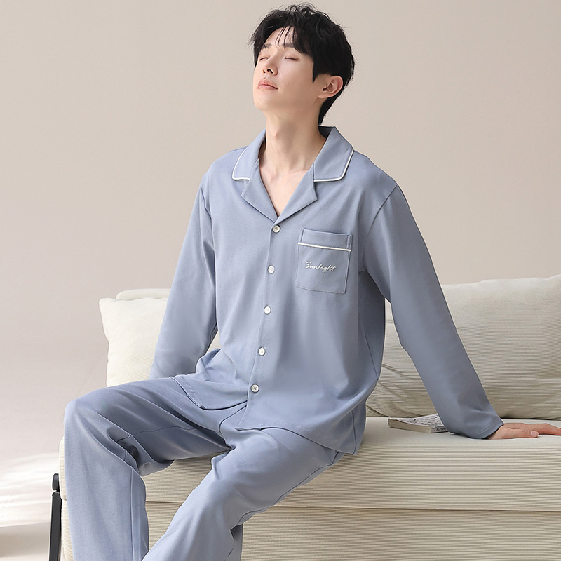 青少年宽松休闲加大码 顶瓜瓜纯棉男睡衣春秋款 套装 开衫 家居服 长袖