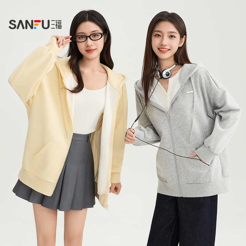 宽松上衣女装 字母金属标连帽开衫 505256 三福卫衣2025秋季