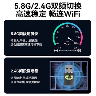 WiFi6无线网卡台式 机笔记本USB接口外置免驱动5G双频蓝牙二合一无限网络信号 电脑WiFi接收发射器高速千兆台式