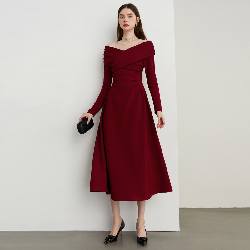 新款 连衣裙夏季 气质独特漂亮掐腰显瘦长裙 交叠V领灰色长款 KEIKO