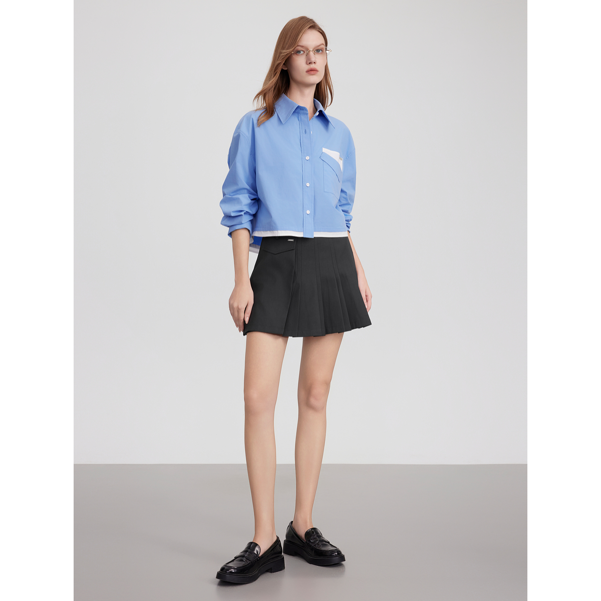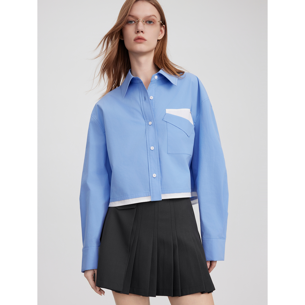 撞色翻领短衬衫 优雅长袖 女2025秋季 设计感时尚 衬衣 新款 ELLE法式