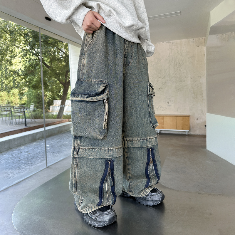 女童裤 儿童裤 子2025秋冬新款 牛仔裤 子 中大童直筒阔腿裤 植木童装