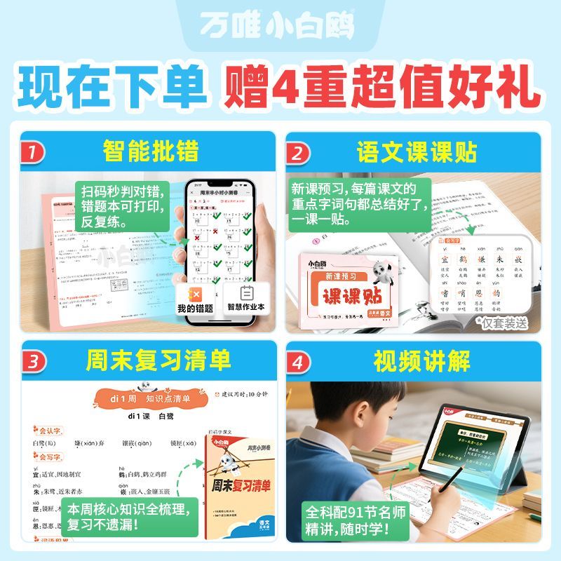 小白鸥周末半小时小测卷2025秋季 试卷学霸思维训练小白鸽情景题天天练 小学语文数学英语三年级上册教材同步练习册期中期末单元