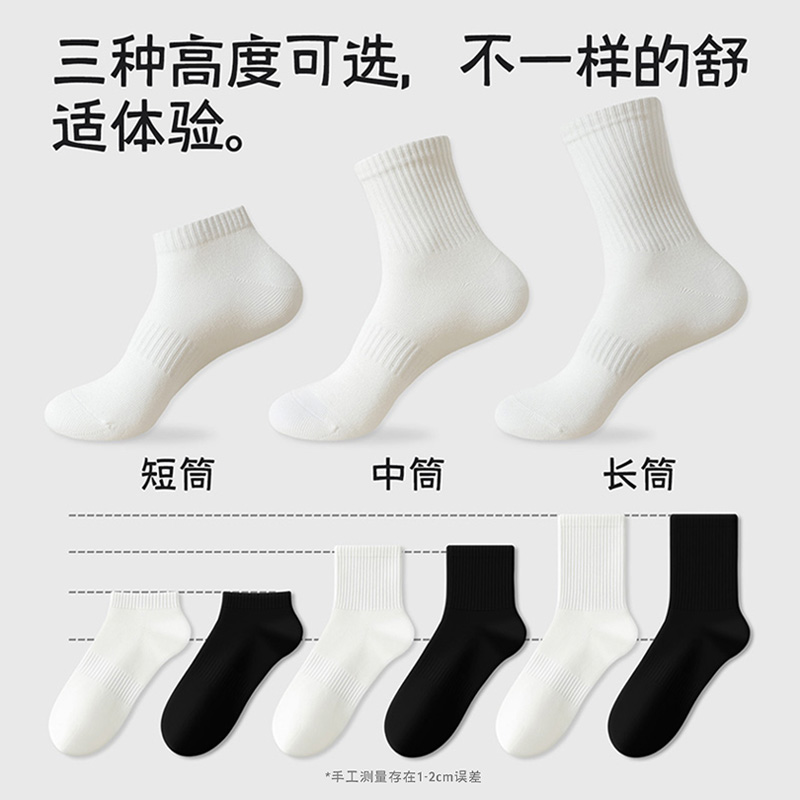 春秋款 白色运动纯棉中筒袜吸汗透气防臭短袜新疆棉长袜男长筒短筒