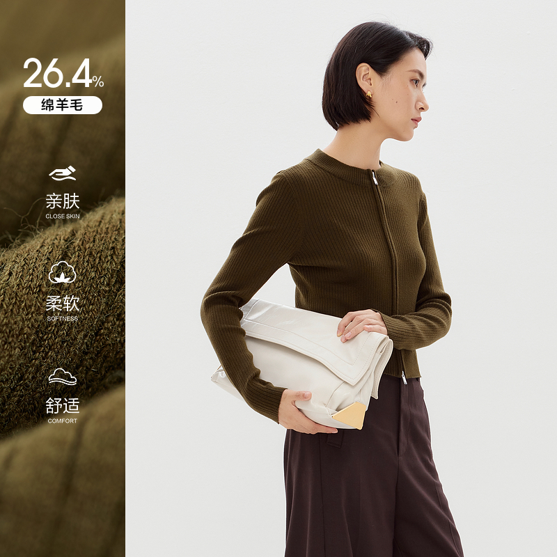厚2025秋冬新款 外套女叠穿上衣内搭打底衫 毛针织衫 水云间复古修身