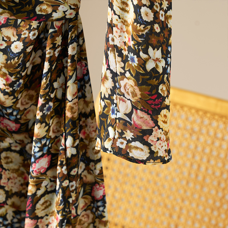 收腰显瘦连衣裙短裙春 新款 阔色针织长袖 拼接花苞小黑裙女2025秋季