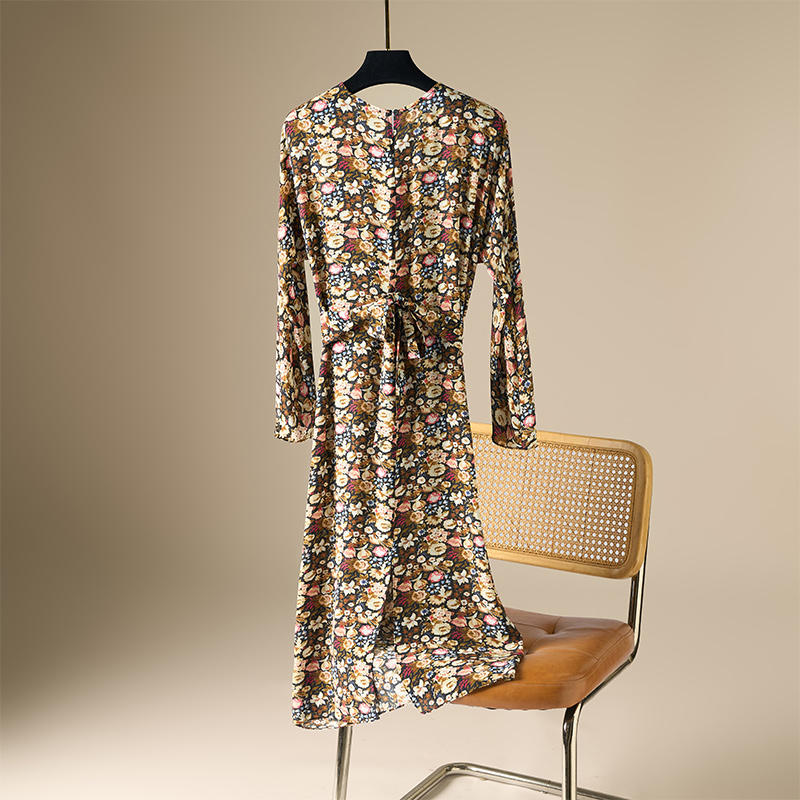 OCHIRLY欧时力 天丝不对称褶饰针织连衣裙收腰长裙2025秋冬新品