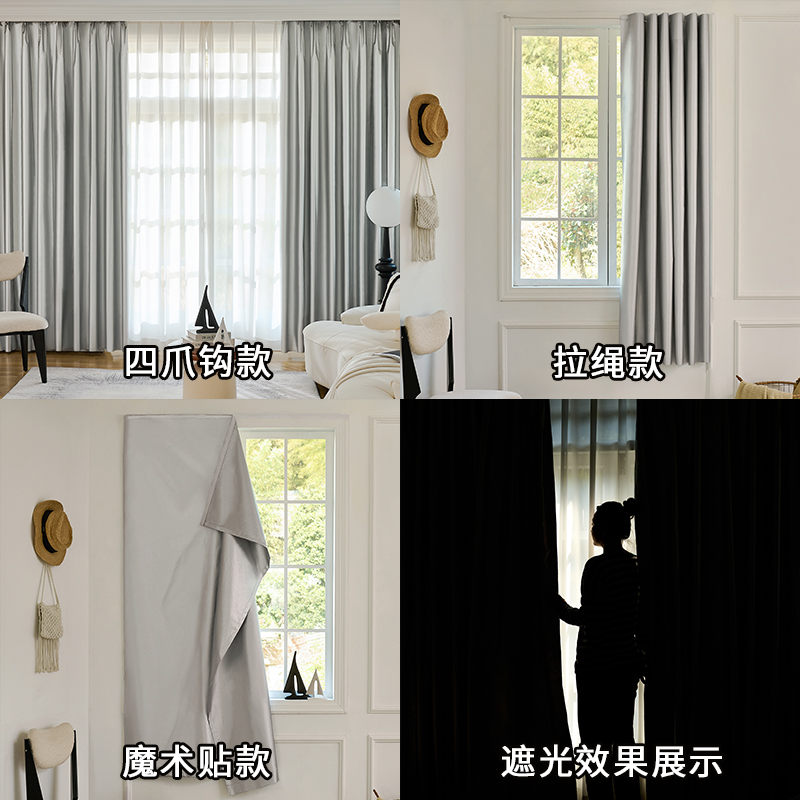 遮光窗帘成品全遮光布神器2025新款 卧室阳台防晒隔热遮阳布免打孔