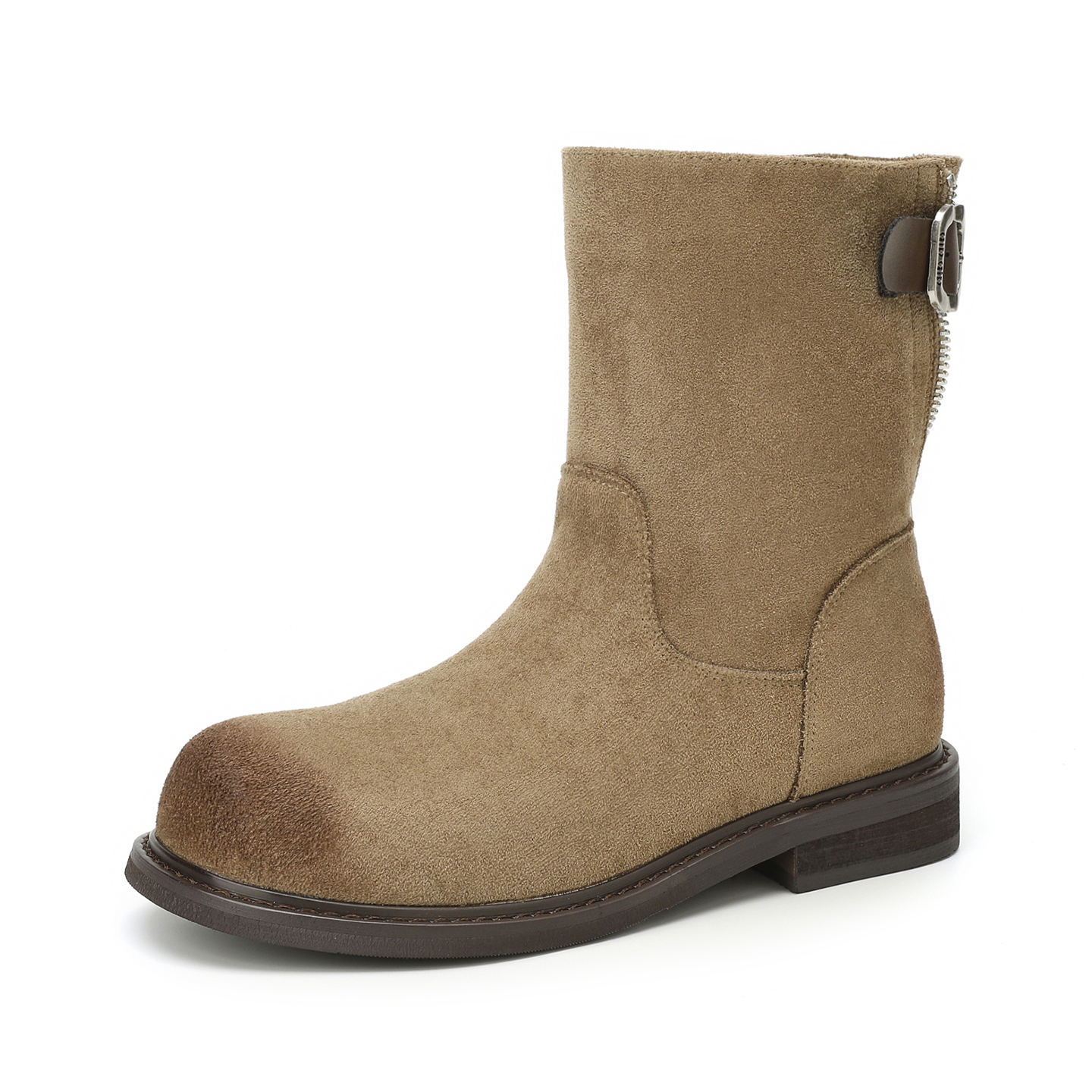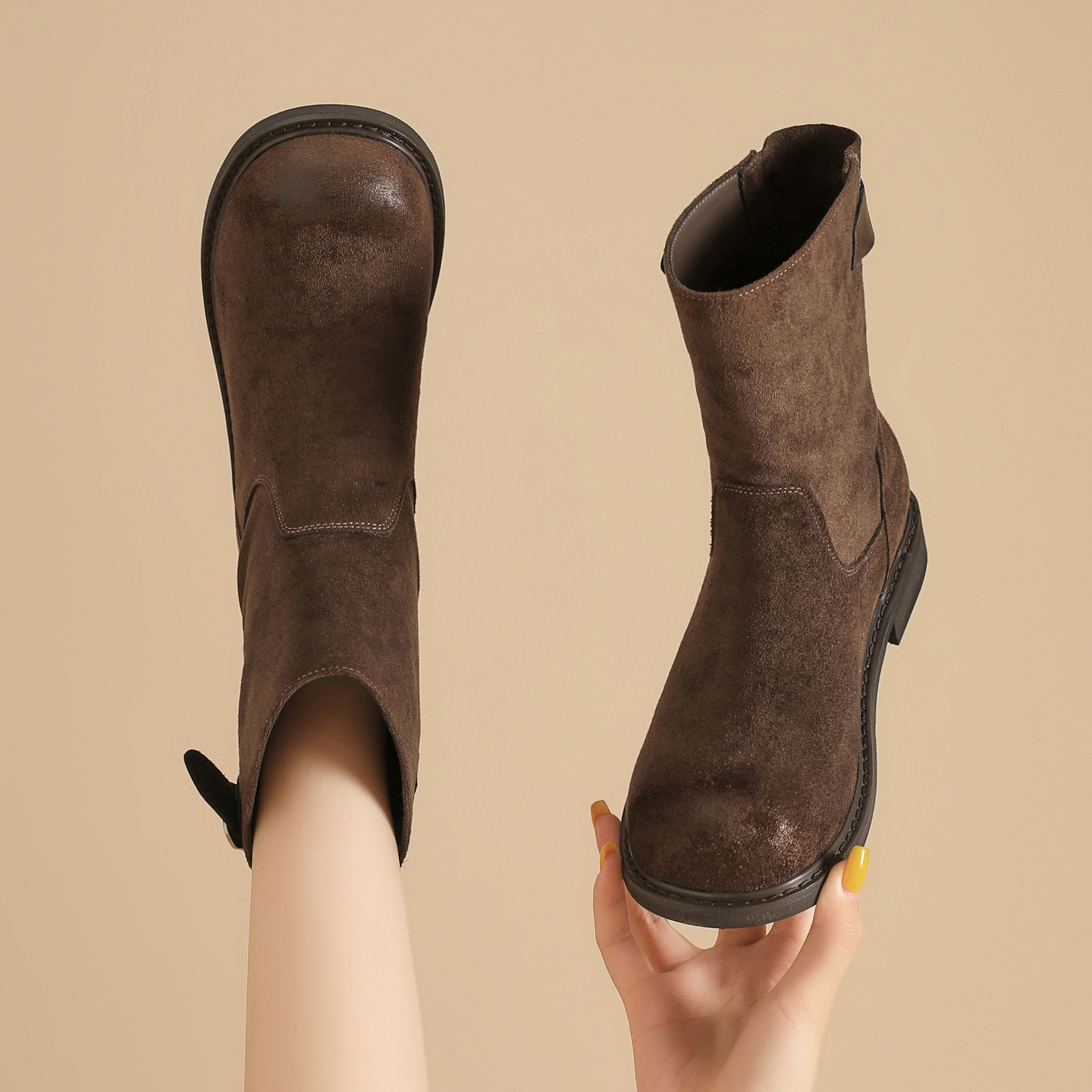 复古短靴2025新款 春秋牛仔单靴百搭英伦风侧拉链厚底马丁靴瘦瘦靴