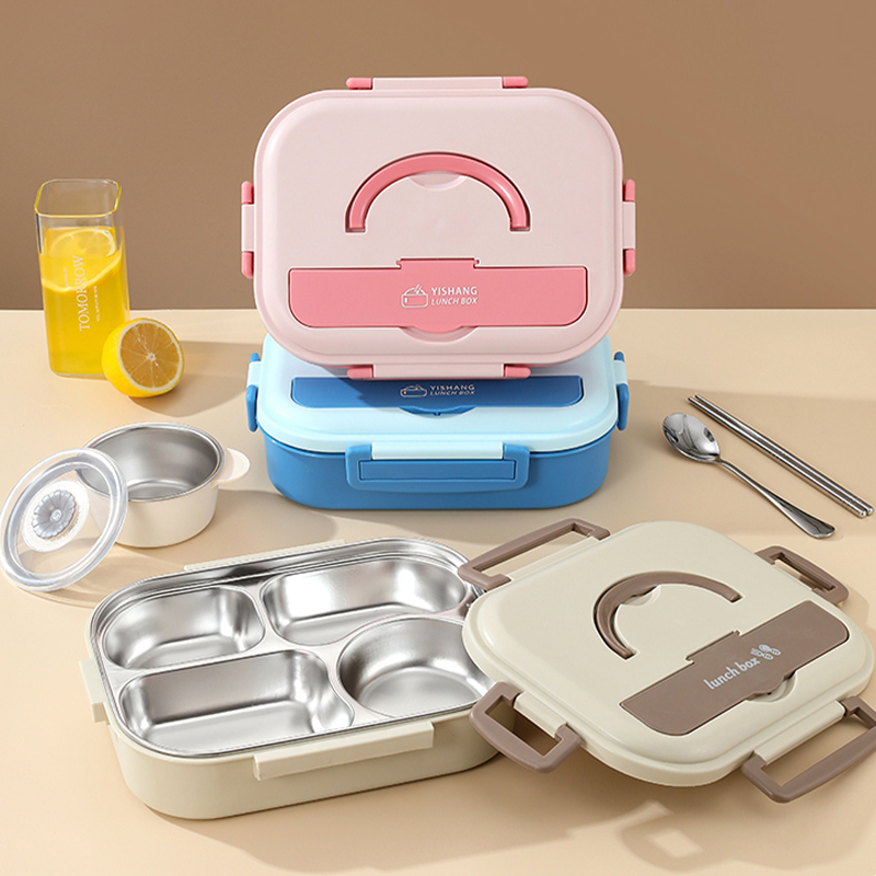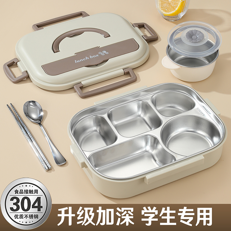 四 五格304不锈钢饭盒上班族分格带汤碗便携餐盒学生微波炉便当盒