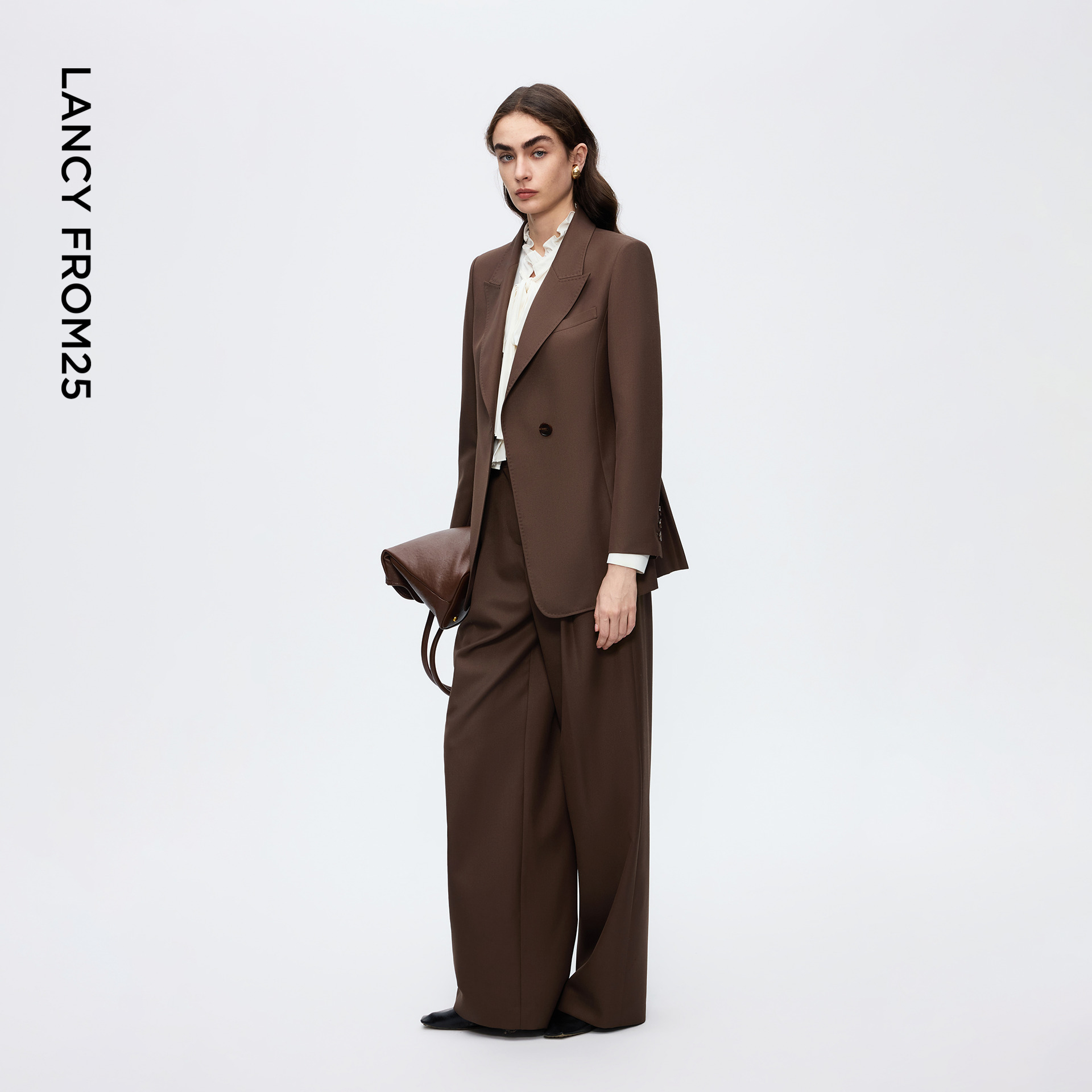 新款 简约优雅通勤女2025年冬季 西裤 朗姿羊毛戗驳领收腰显瘦西装