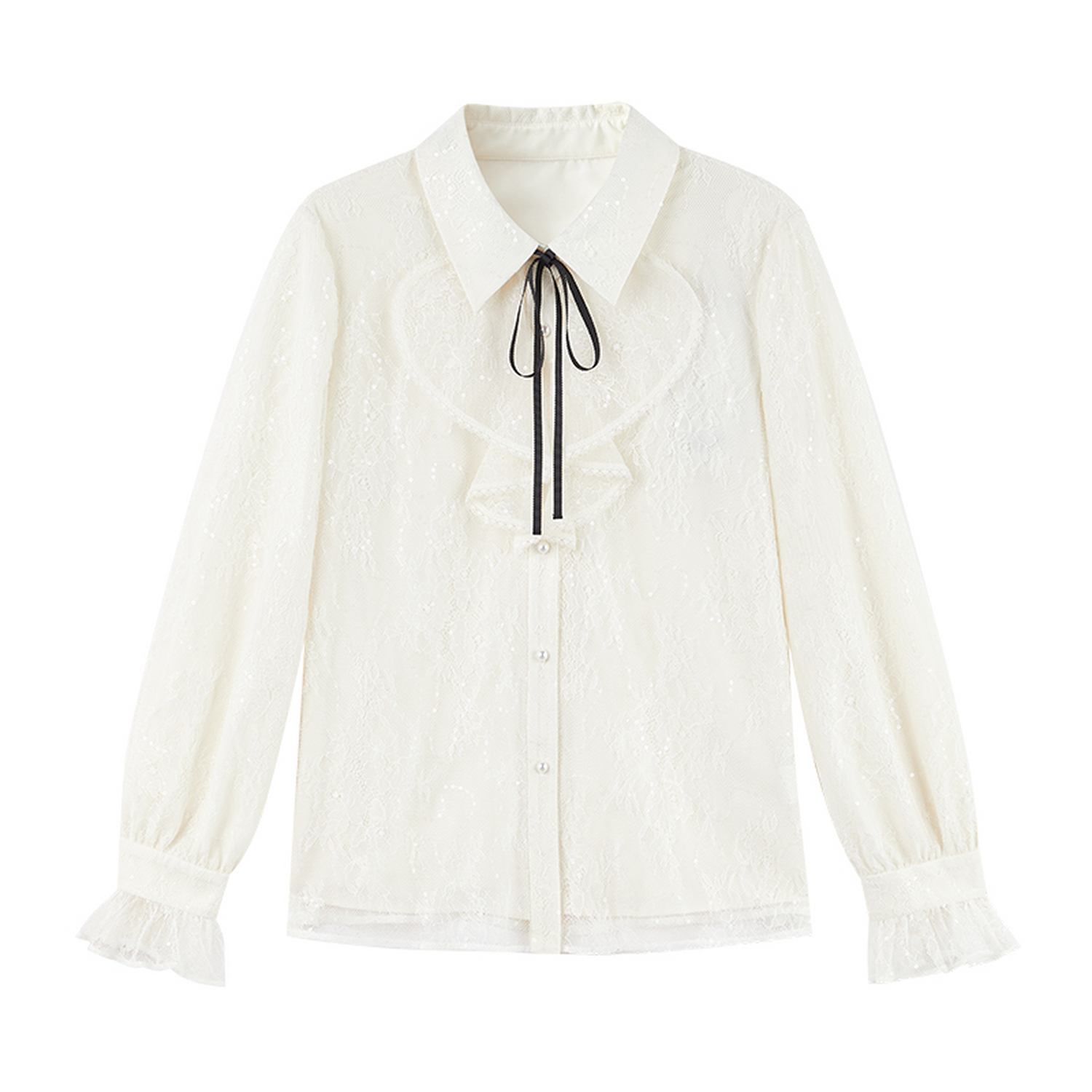 质感经典 秋水伊人优雅翻领蕾丝衫 时尚 女装 打底上衣 2025秋冬新款