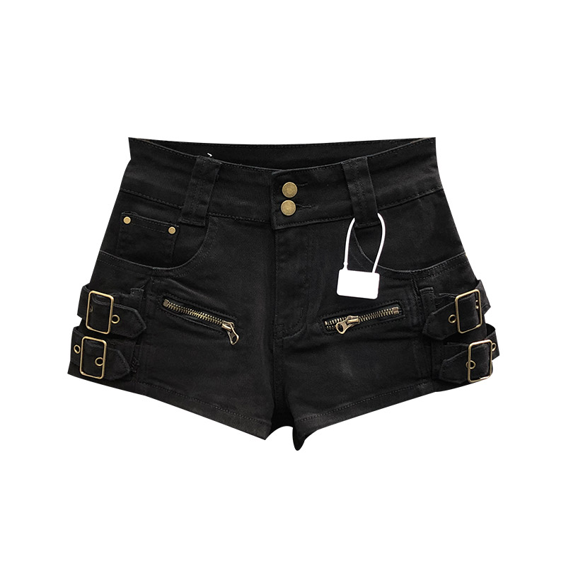 阔腿热裤 黑色高腰弹力牛仔短裤 显瘦A字工装 修身 潮 女2025秋冬时尚