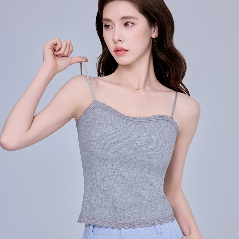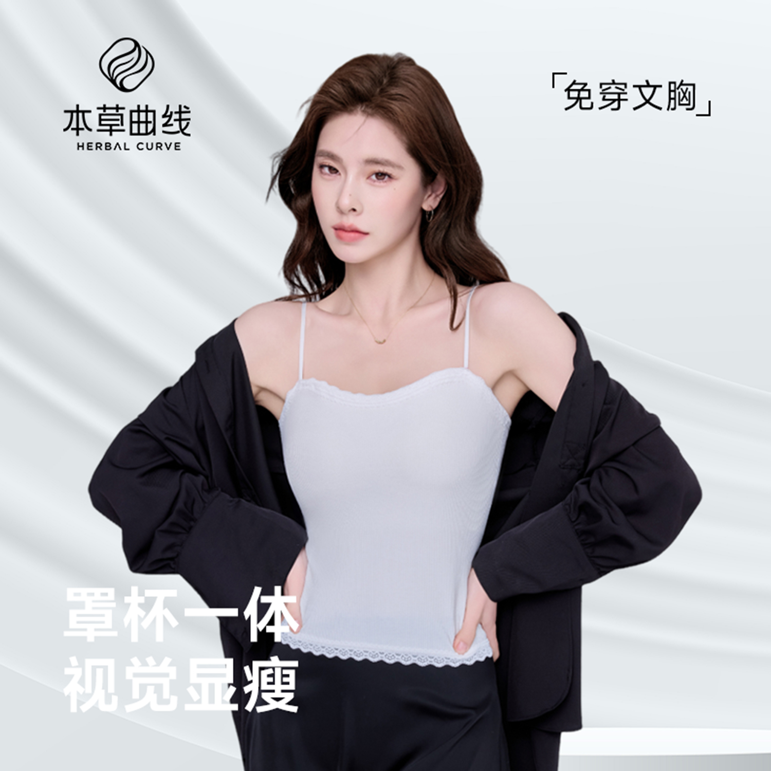 本草曲线本草曲线蕾丝花边自带胸垫吊带背心女夏无痕一体式 打底衣