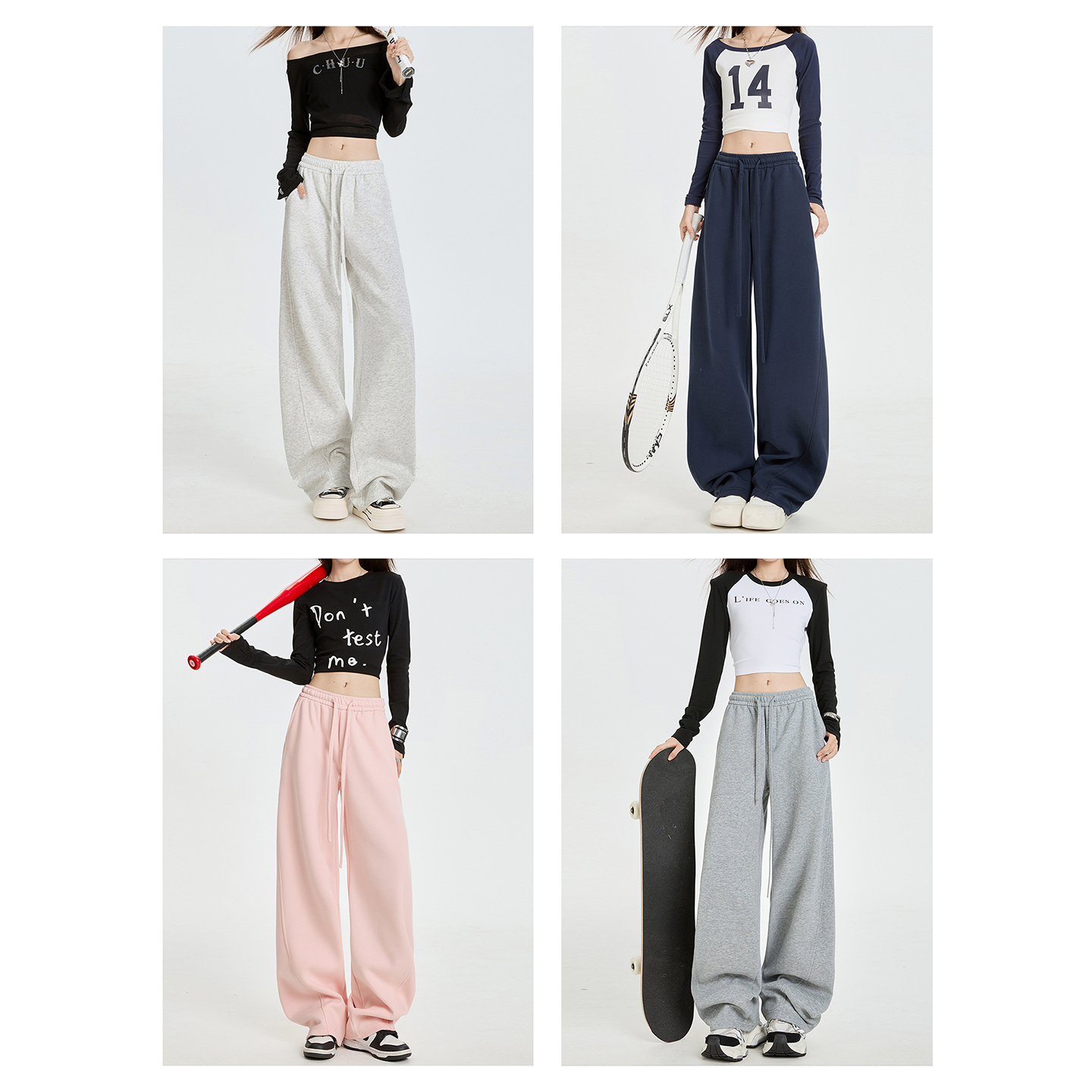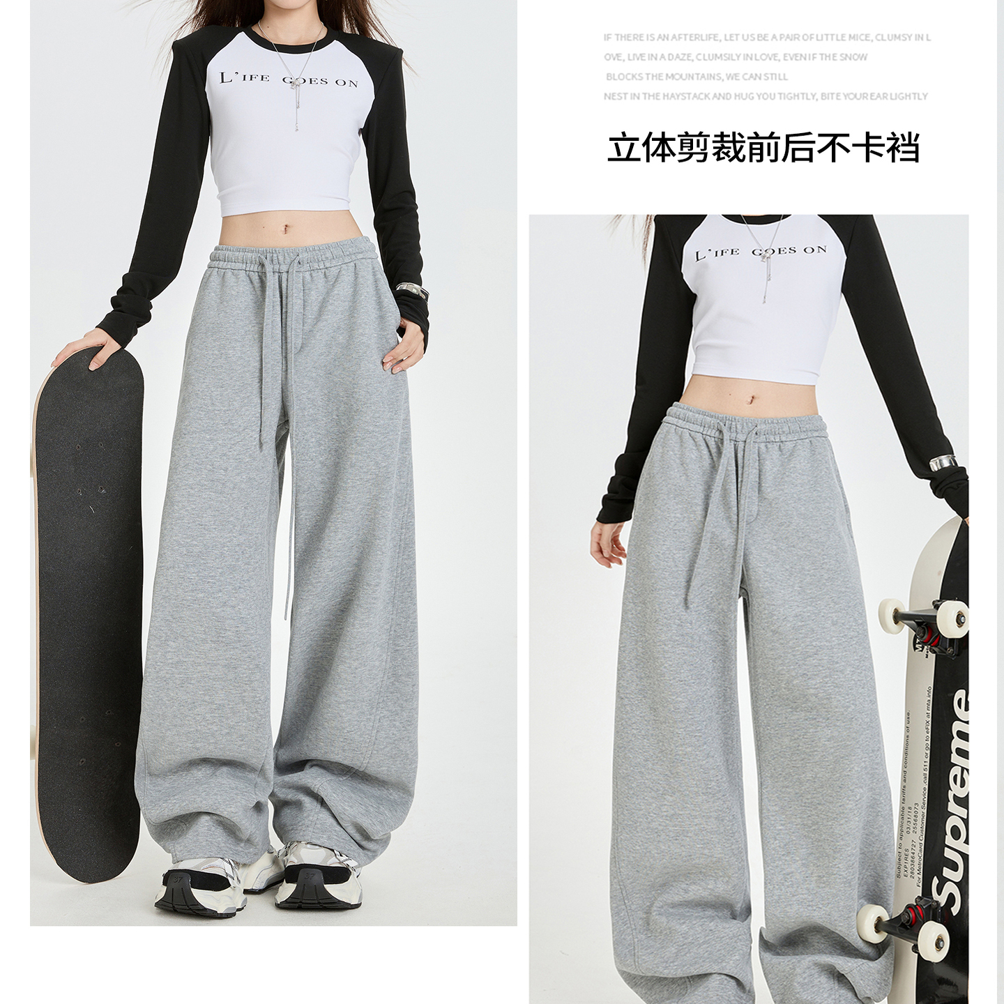 高级宽松bf慵懒垂感直筒加绒休闲阔腿裤 2025新款 子女春秋季 糯米裤