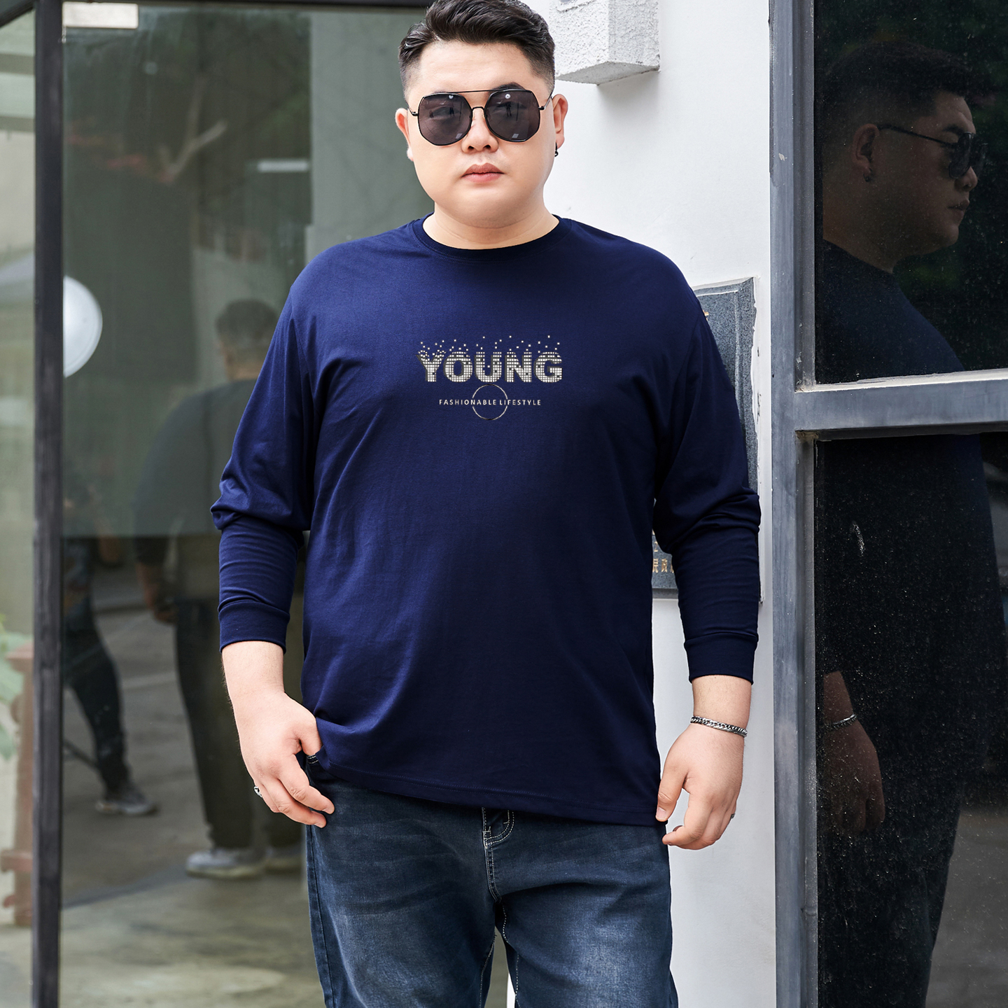 打底衫 2025新款 男T恤纯棉加肥加大宽松休闲胖子秋衣薄款 长袖 秋季