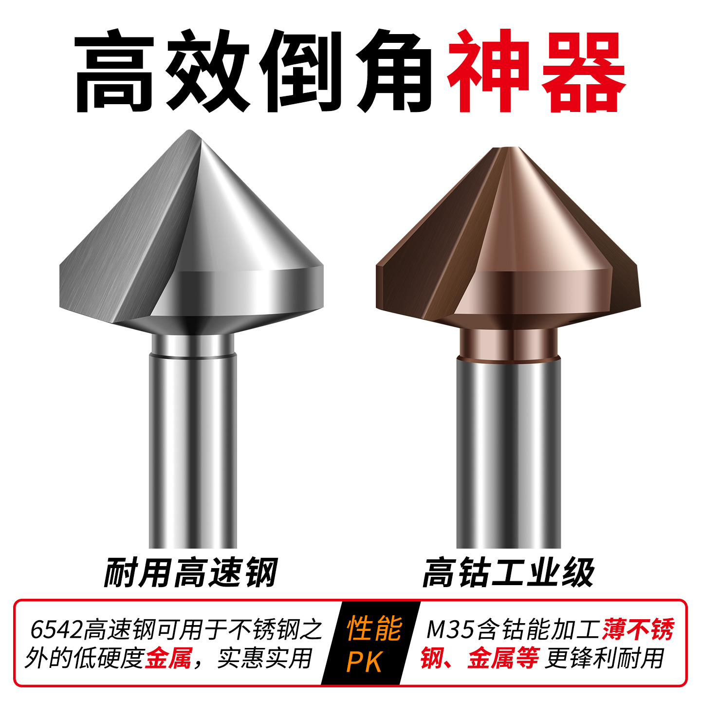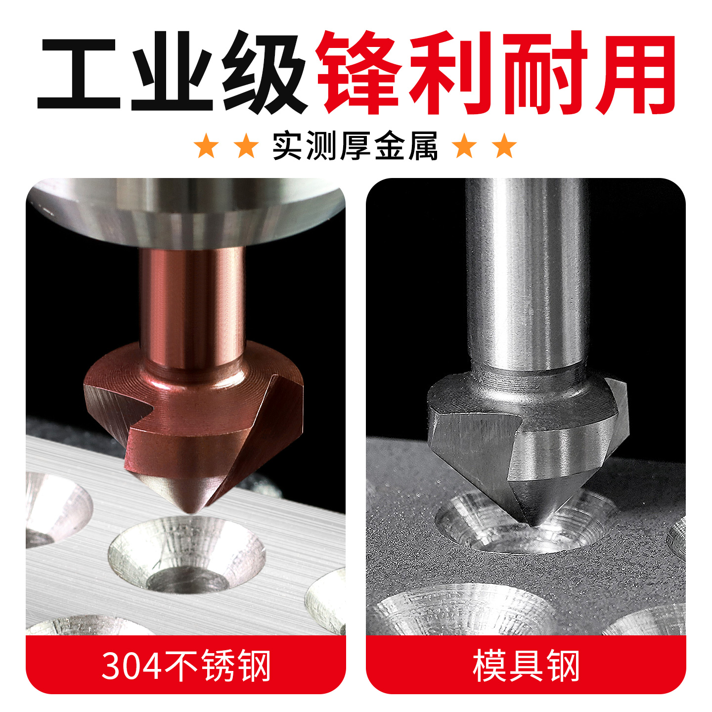 直柄单刃三刃倒角刀去毛刺沉头钻头45度倒角神器斜内孔90度修边器