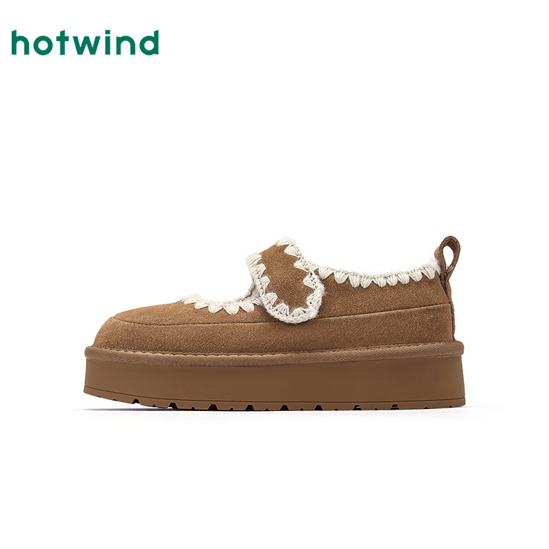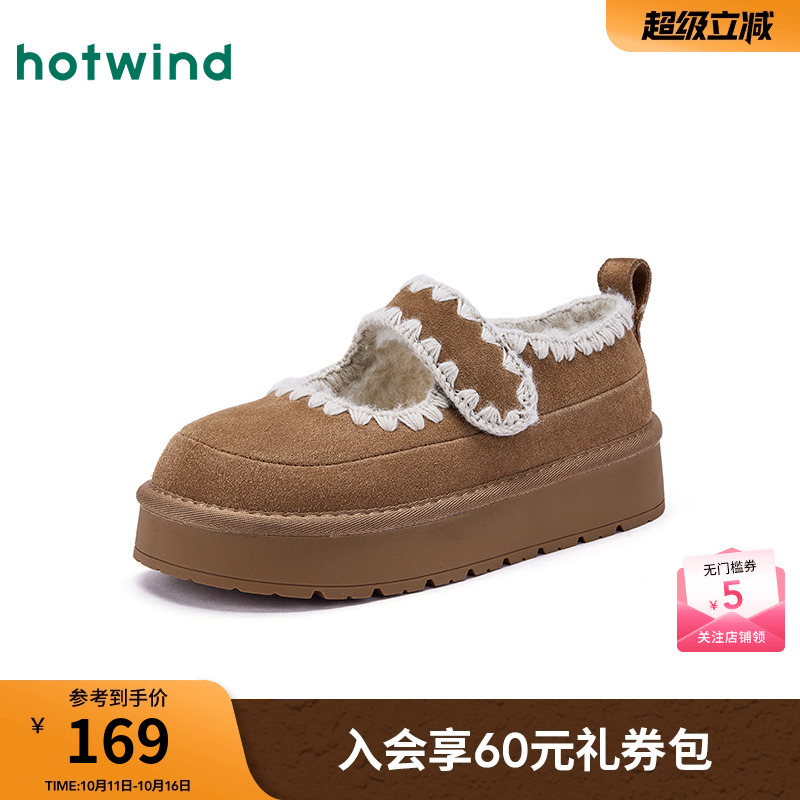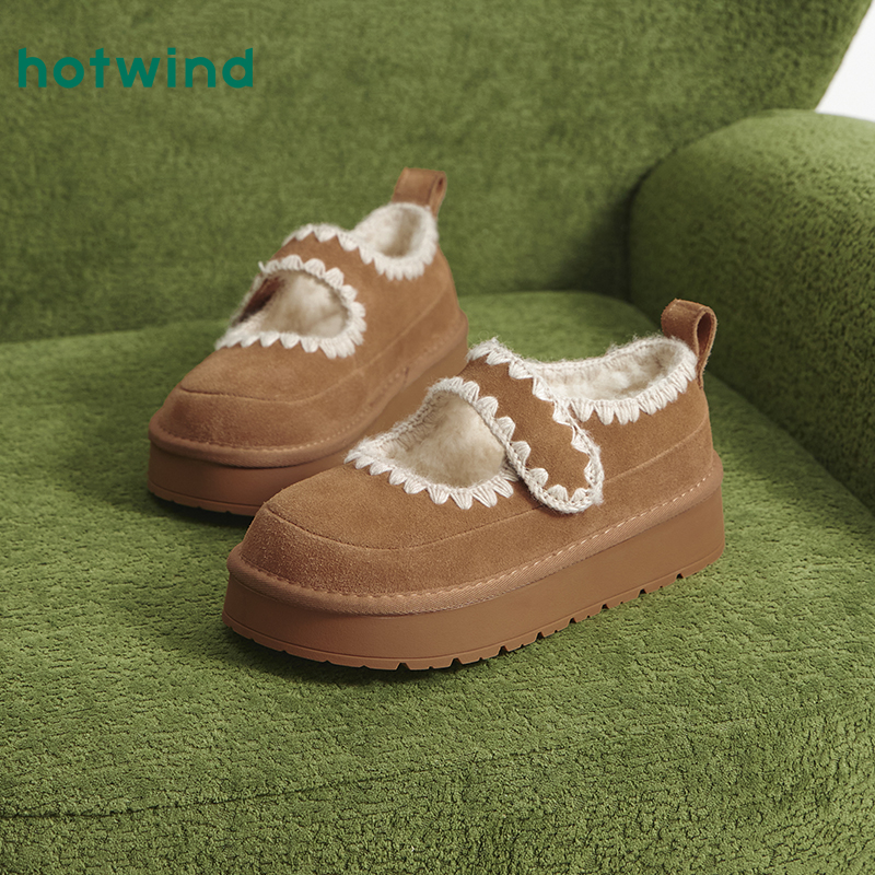 复古鞋 热风厚底雪地靴女鞋 毛绒短筒靴棕色毛毛鞋 新款 子 2025年冬季