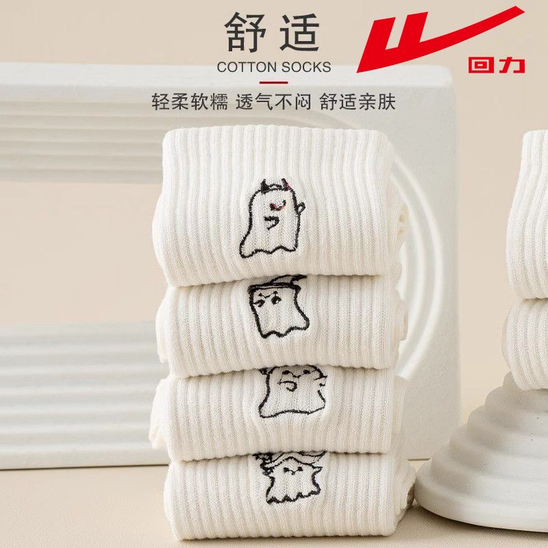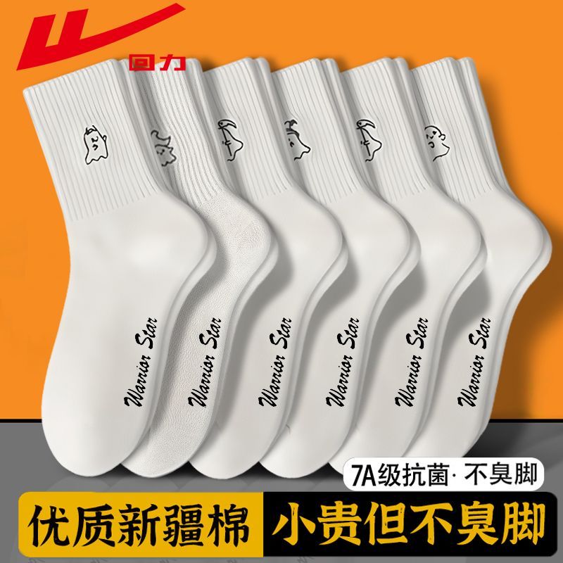 回力白色袜子女款 潮流百搭长筒袜 中筒7A抗菌纯色新疆棉春秋四季