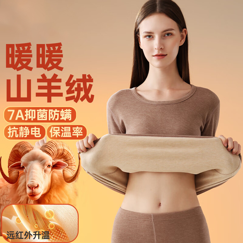 德绒羊绒黑色红色 7A秋衣秋裤 羊毛蚕丝保暖内衣女士套装 加厚秋冬季