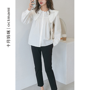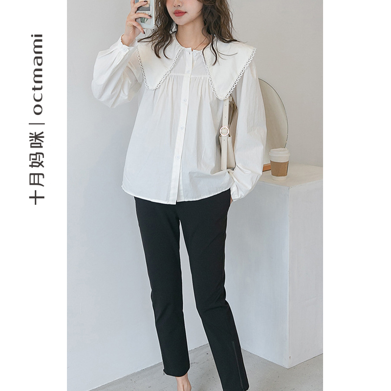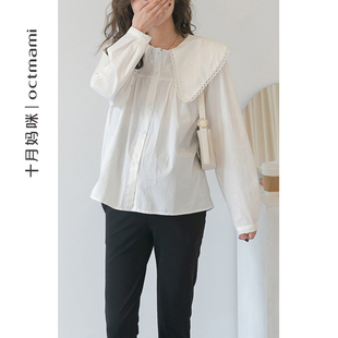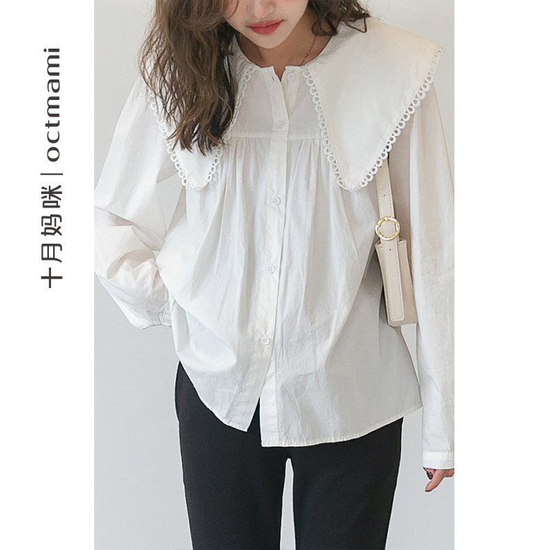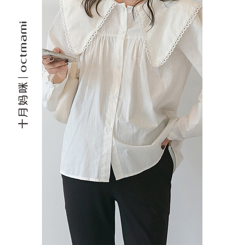 套头雪纺衬衫 LILY初秋新款 掐腰蕾丝白色上衣泡泡短袖 全棉法式 女装