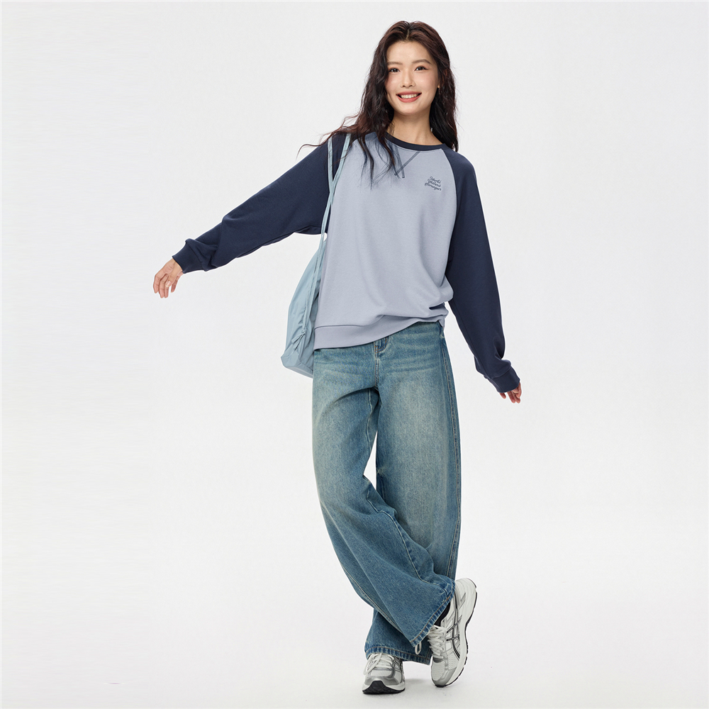 英文刺绣撞色圆领长袖 美式 套头上衣05325809 新款 佐丹奴卫衣女秋季