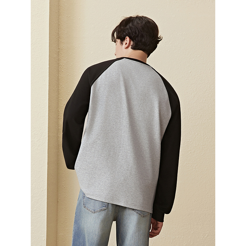 T恤插肩袖 针织肌理撞色拼接长袖 内搭 2025秋季 GXG男装 新品 长袖
