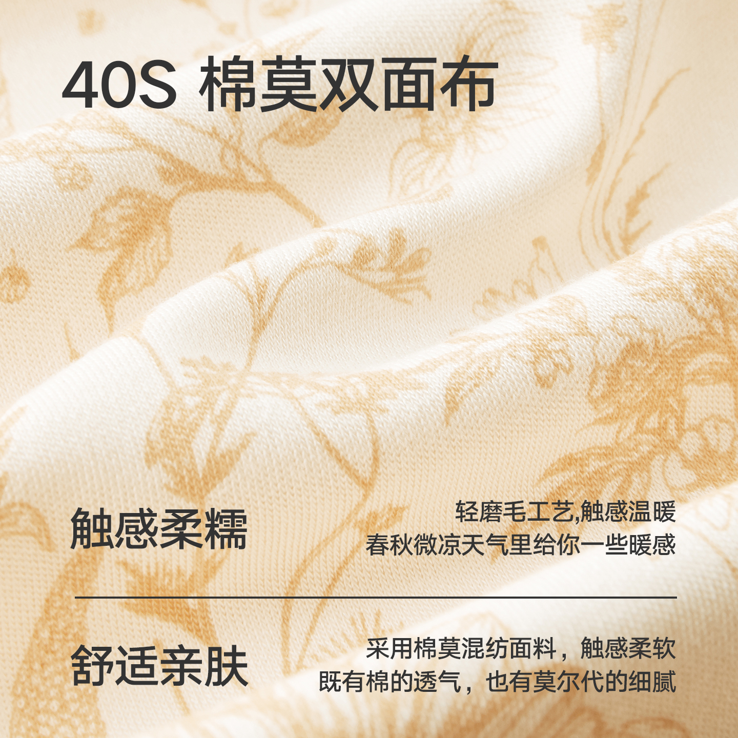 全棉时代睡衣男女士针织家居服情侣套装 7A抗菌除螨纯棉睡衣春秋季