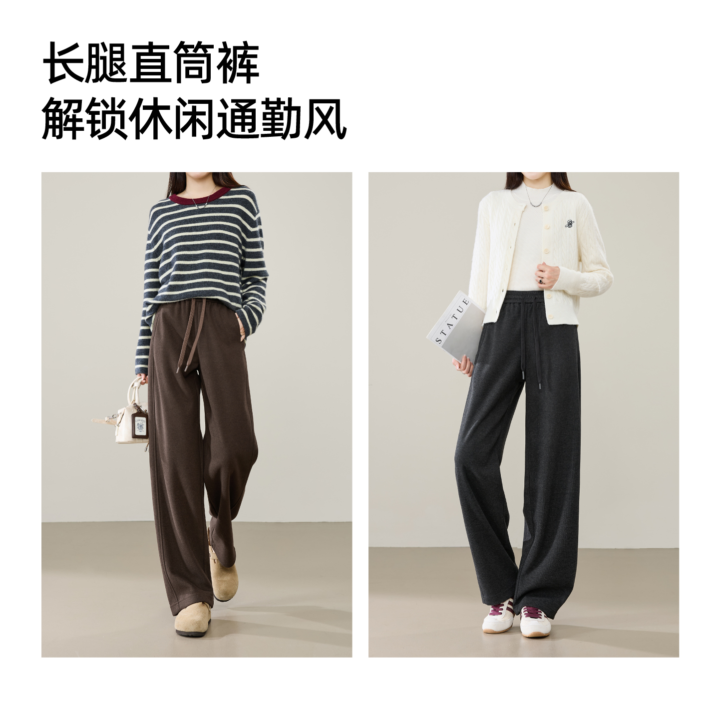 阔腿休闲裤 逸阳宽微松量直筒裤 舒适弹力高腰窄版 新款 女2025年秋季
