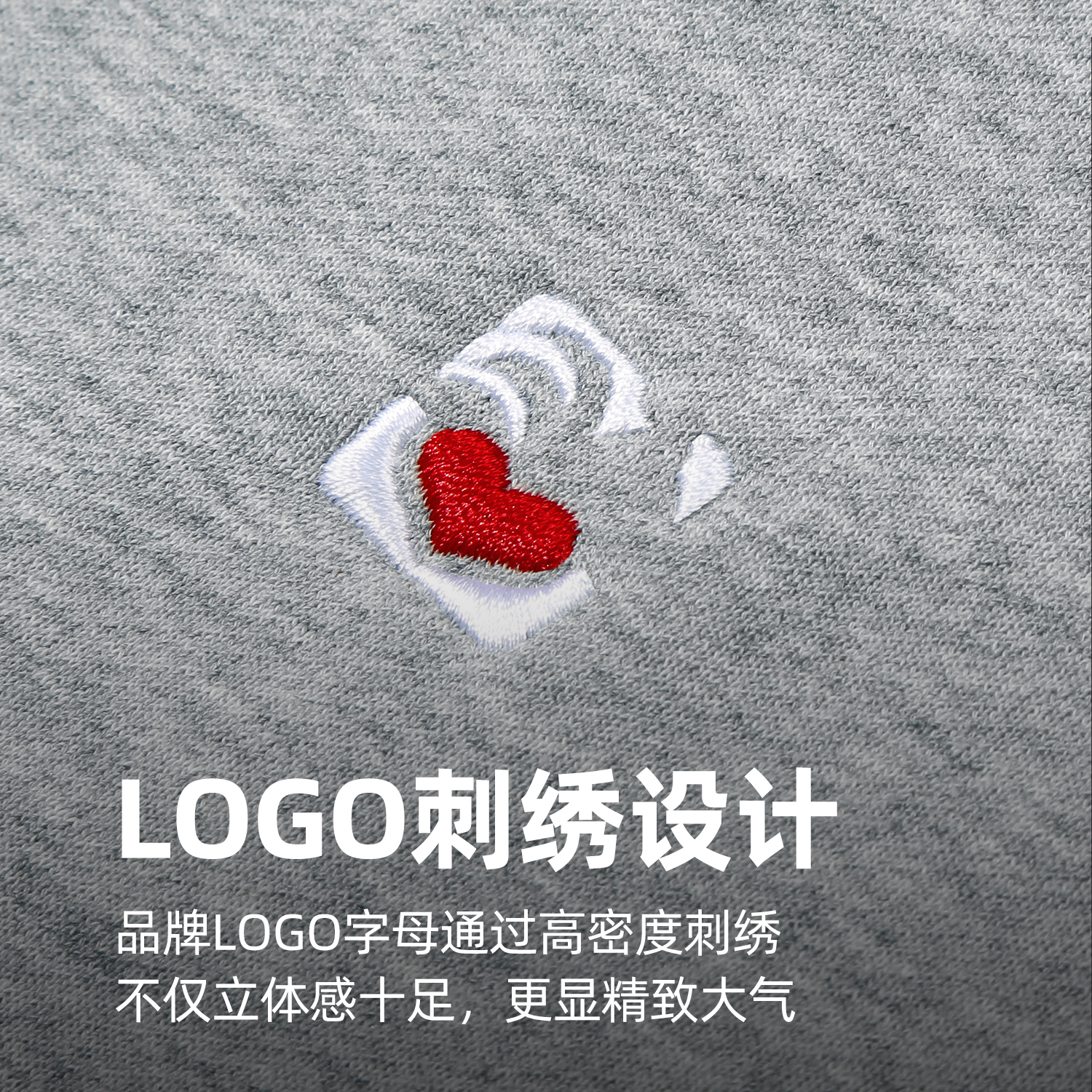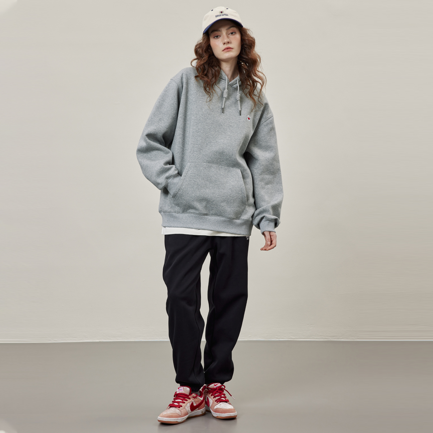 公鸡冠军灰色连帽重磅卫衣女秋冬新款 宽松加绒刺绣落肩保暖上衣潮