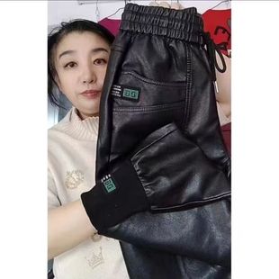 松紧腰高腰百搭哈伦皮裤 加绒加厚秋冬大码 漏专柜撤回皮裤 清仓捡