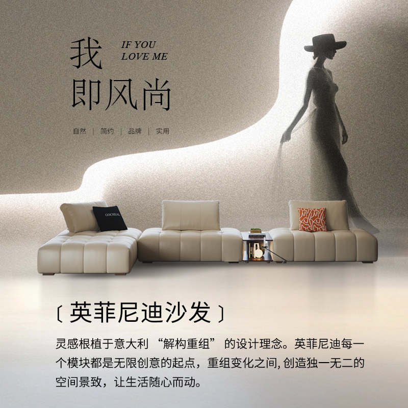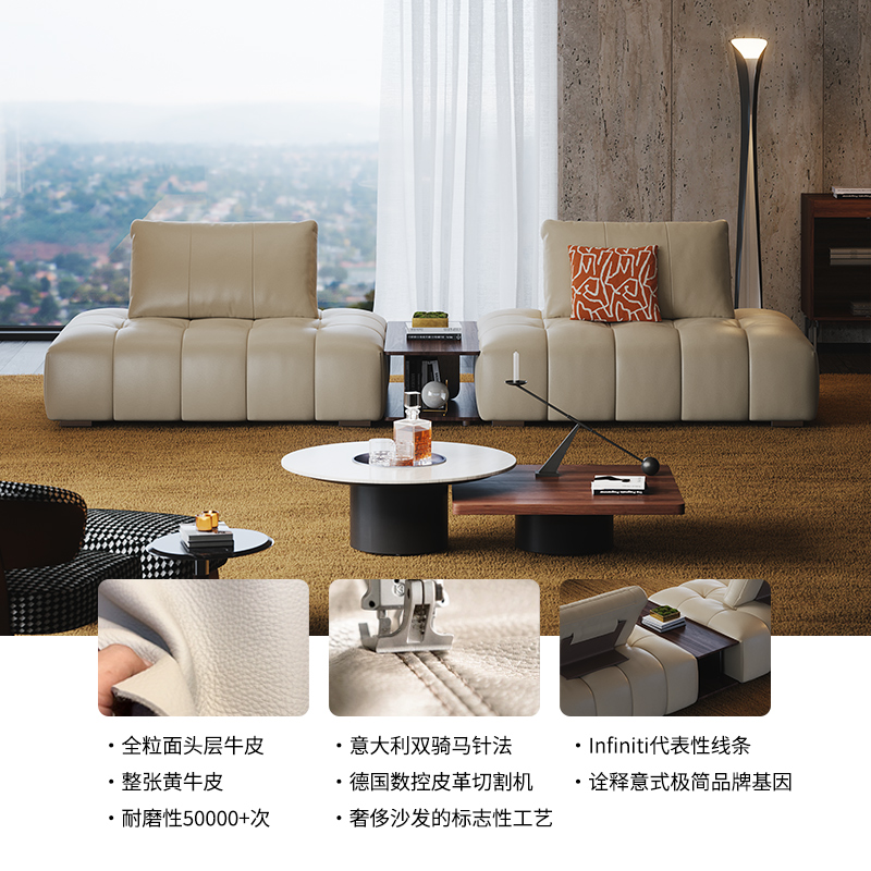 广巢 极简客厅轻奢小户型真皮钢琴键模块组合B 英菲尼迪沙发意式