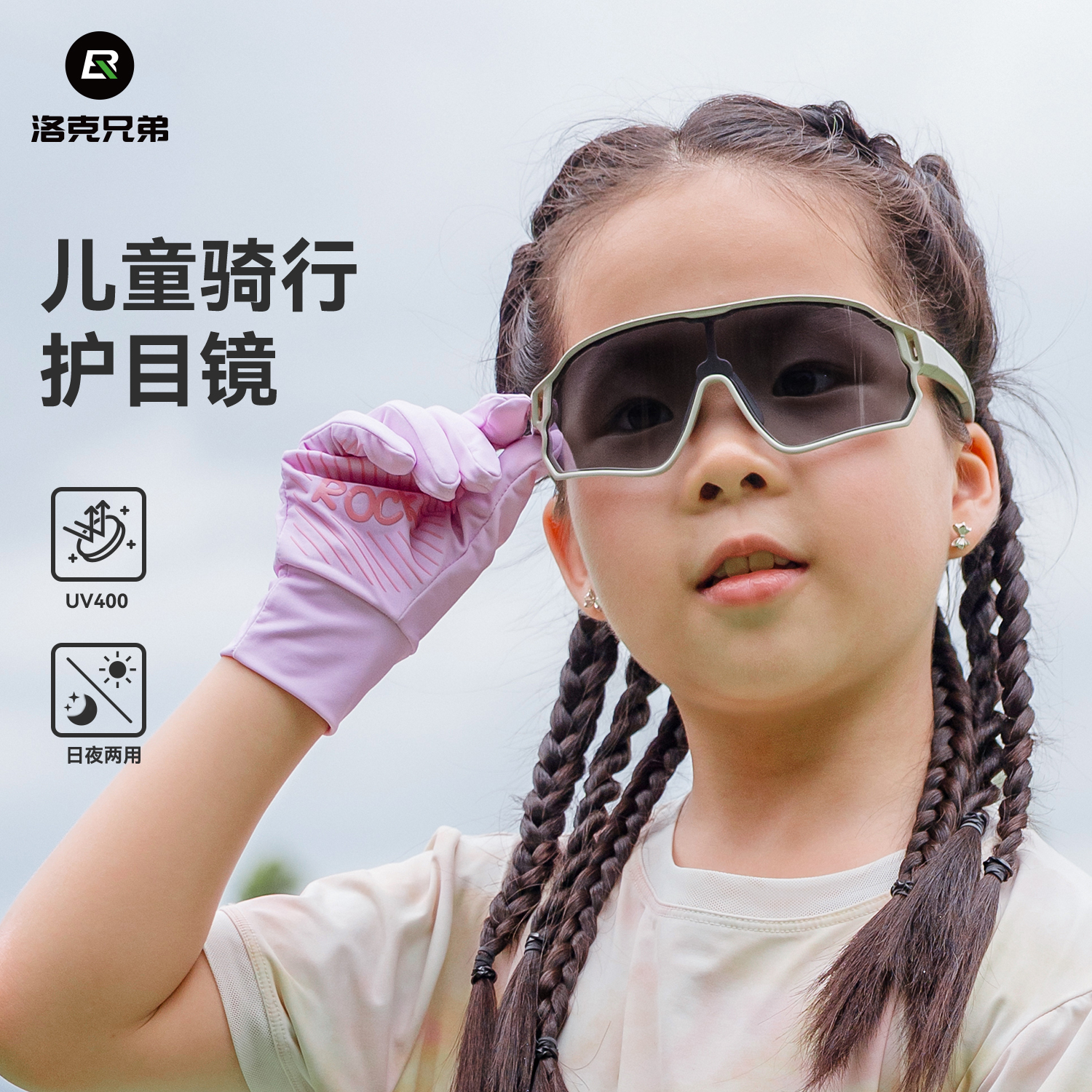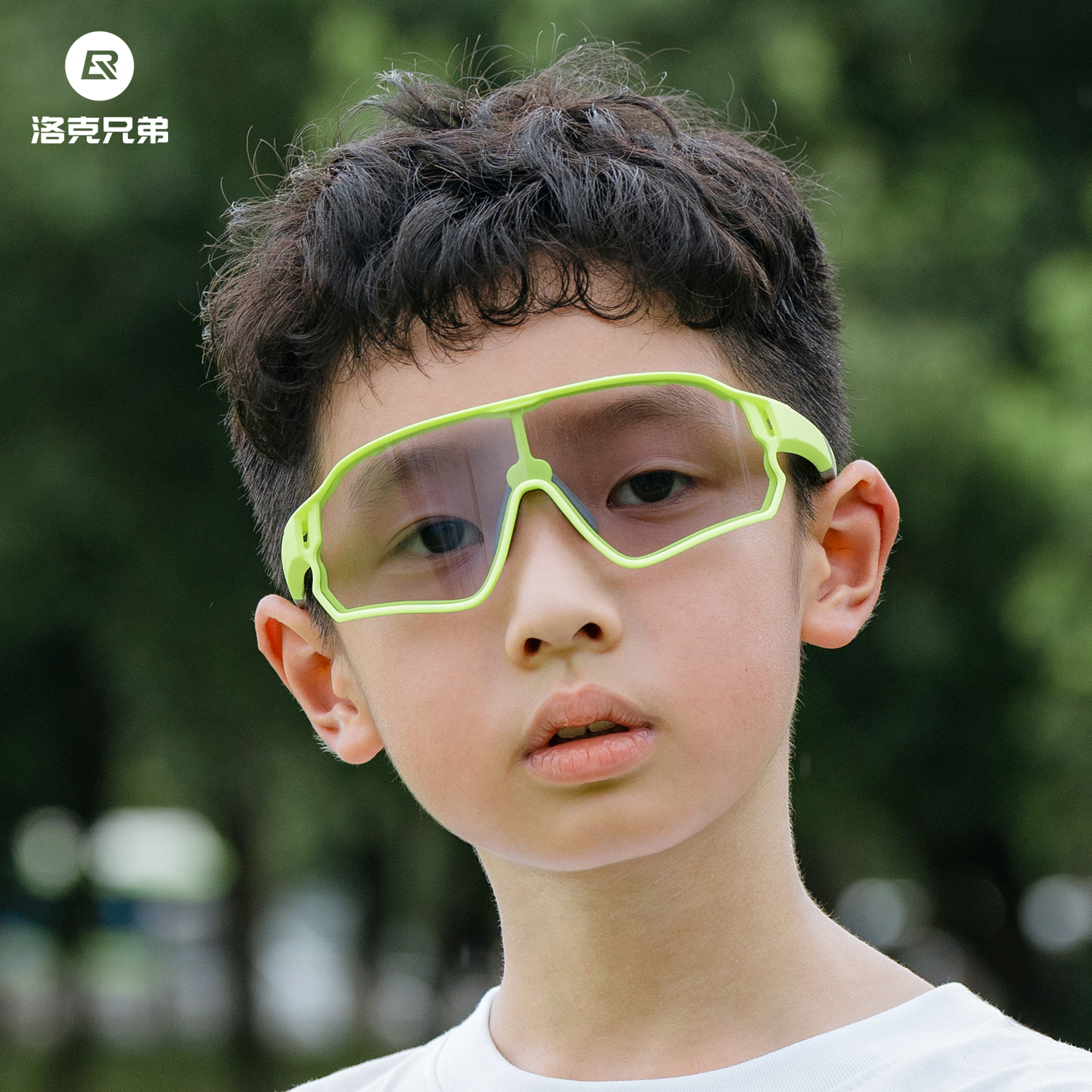 洛克兄弟儿童变色骑行眼镜防紫外线男女款 青少年运动自行车护目镜