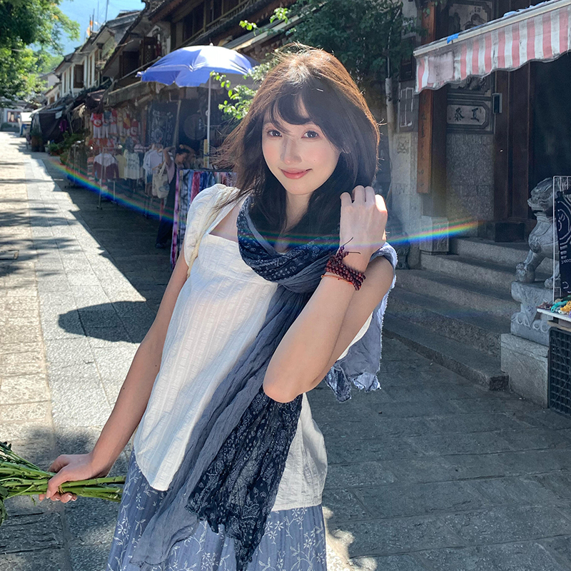 森系文艺复古棉麻碎花围巾云南大理新疆旅游丝巾民族风披肩外搭女
