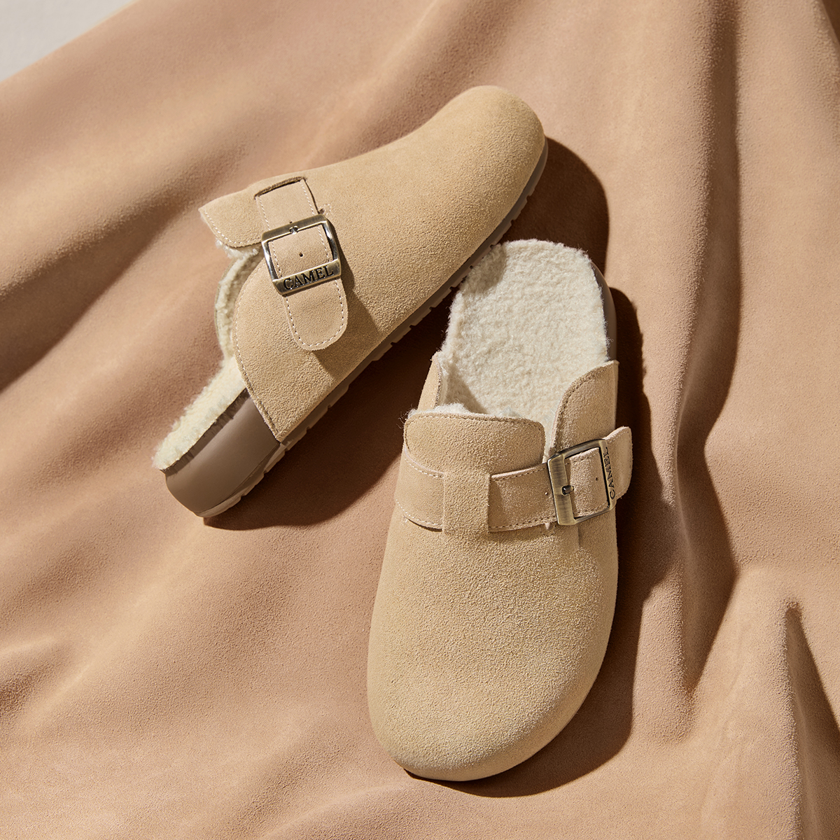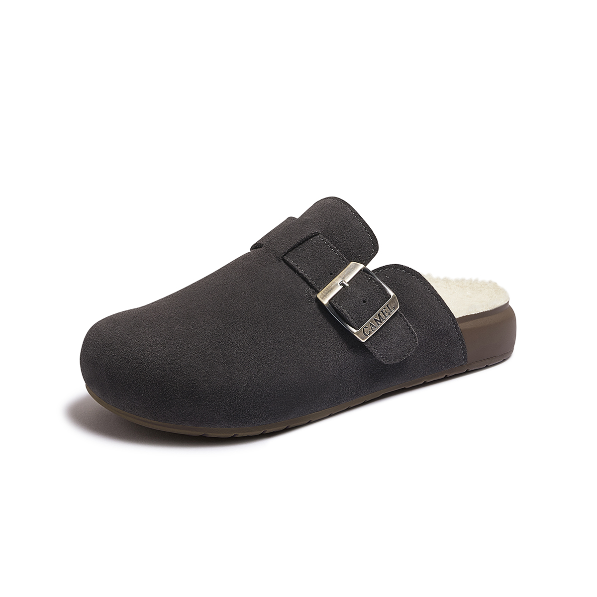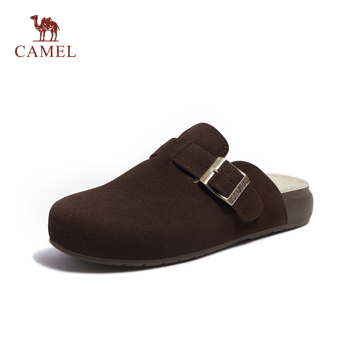女半拖鞋 骆驼女鞋 包头拖勃肯鞋 复古加绒毛毛鞋 外穿 2025秋冬新款