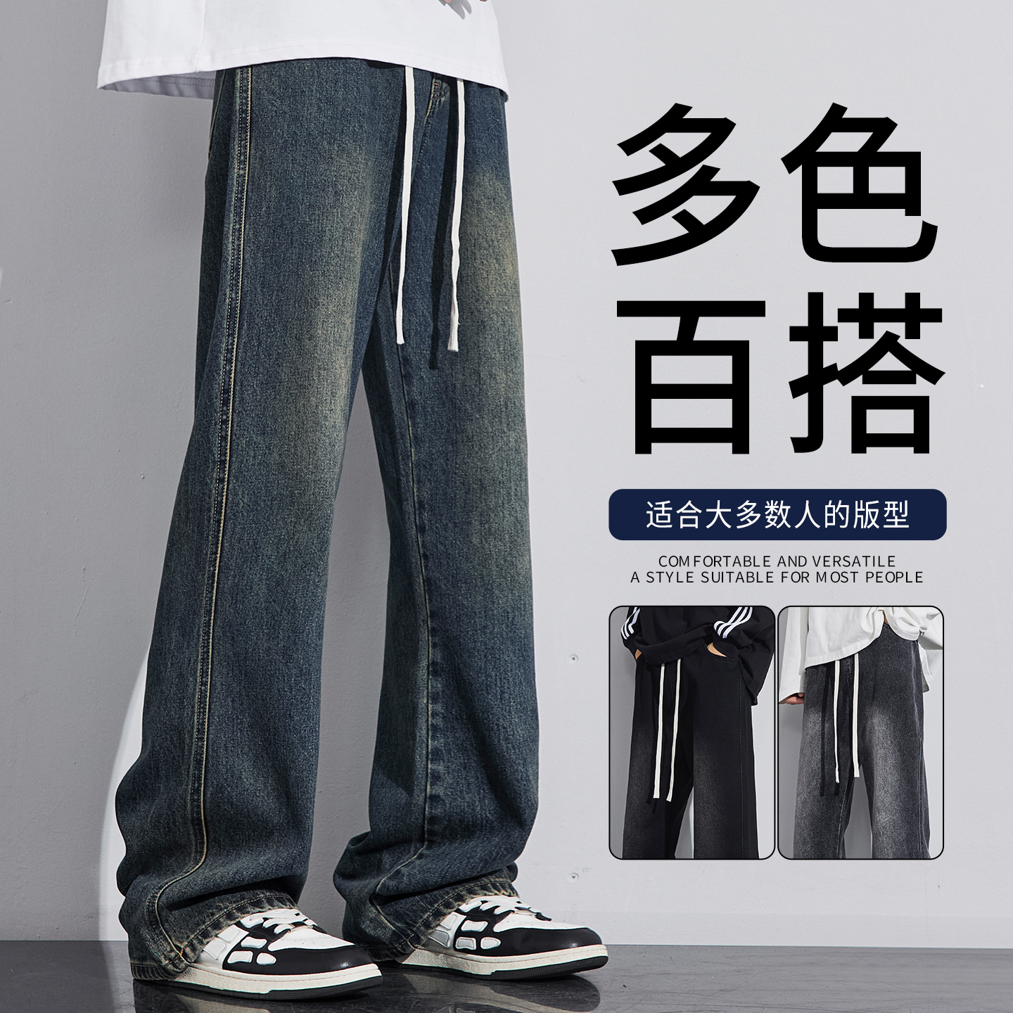 潮流复古青少年男生长裤 直筒渐变牛仔裤 子美式 宽松休闲裤 男秋冬季
