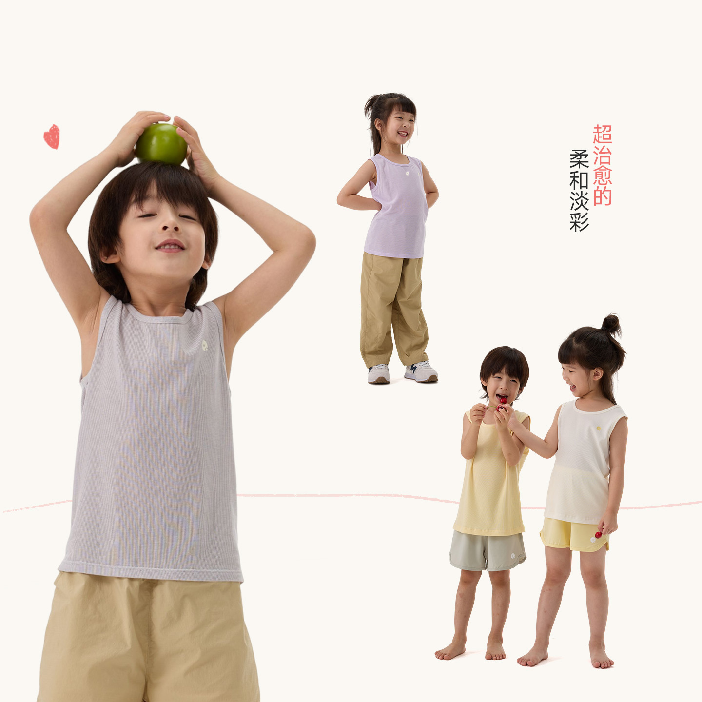 Q21儿童背心男女孩宝宝天丝美丽诺羊毛不扎可机洗秋冬无袖 T恤打底