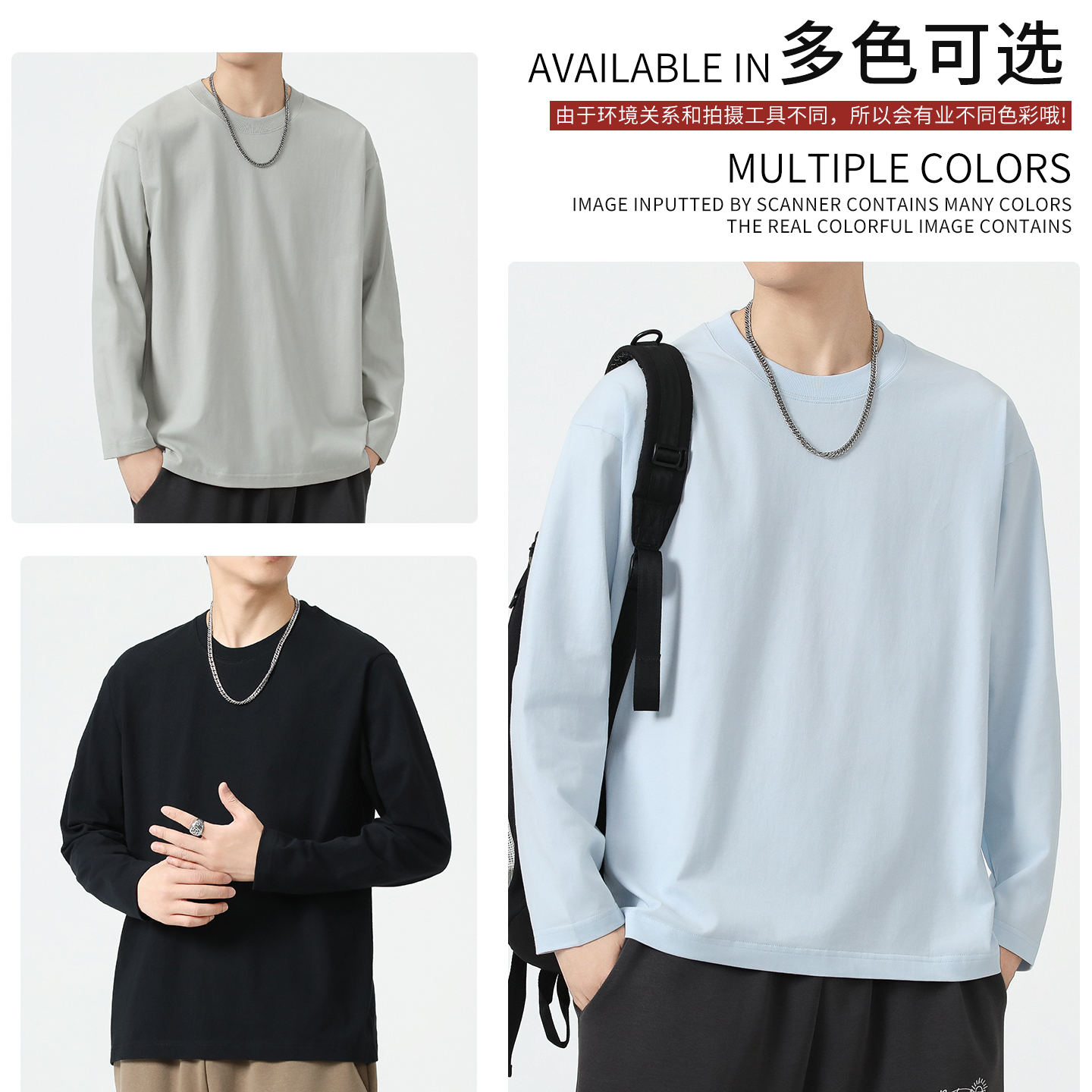 宽松休闲百搭圆领打底衫 2025新款 春秋款 T恤男款 上衣潮牌 纯棉长袖