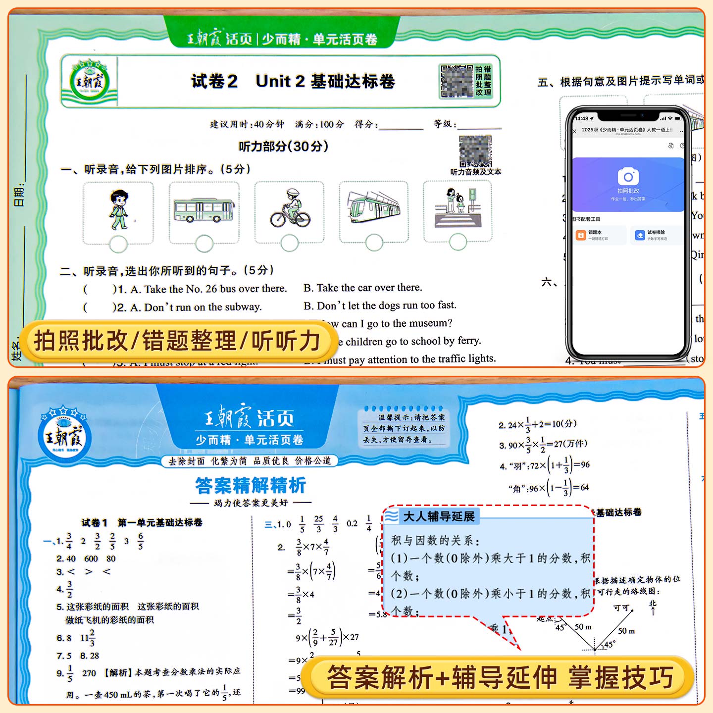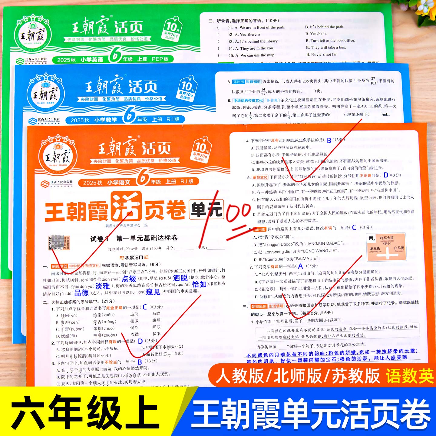 测试卷期中期末冲刺考试卷子人教版 活页卷小学6年级教材同步单元 北师苏教 六年级上册测试卷全套语文数学英语王朝霞试卷单元 2025秋
